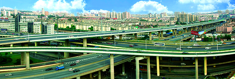 中環(huán)線浦西段全長(zhǎng)15.6km,主線雙向8車道,設(shè)立交4座、8對(duì)進(jìn)出匝道。采用地面+地道的方式,較好地改善沿線道路景觀;優(yōu)化道路線形,改善了上海中學(xué)及沿線建筑環(huán)境;對(duì)虹梅路原立交作盡可能小的影響,分期解決立交轉(zhuǎn)向交通需求;立交處橋梁立柱見(jiàn)縫插針,利用老橋橋面和架橋機(jī)技術(shù)架設(shè)大跨徑主梁。