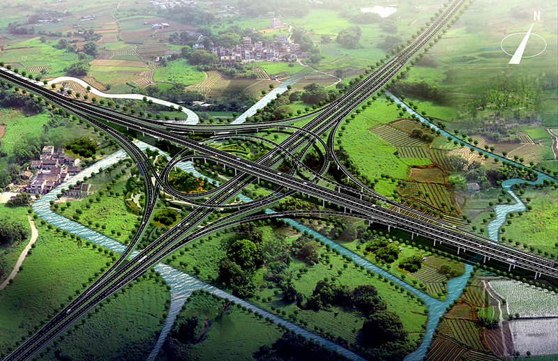 S26公路主線(xiàn)高架為雙向6車(chē)道高速公路、設(shè)計(jì)車(chē)速100km/h,主線(xiàn)高架橋梁標(biāo)準(zhǔn)路段寬度為32m。地面道路為雙向4車(chē)道二級(jí)公路、設(shè)計(jì)車(chē)速60km/h。項(xiàng)目全長(zhǎng)10.6公里,全線(xiàn)設(shè)置互通立交4座。