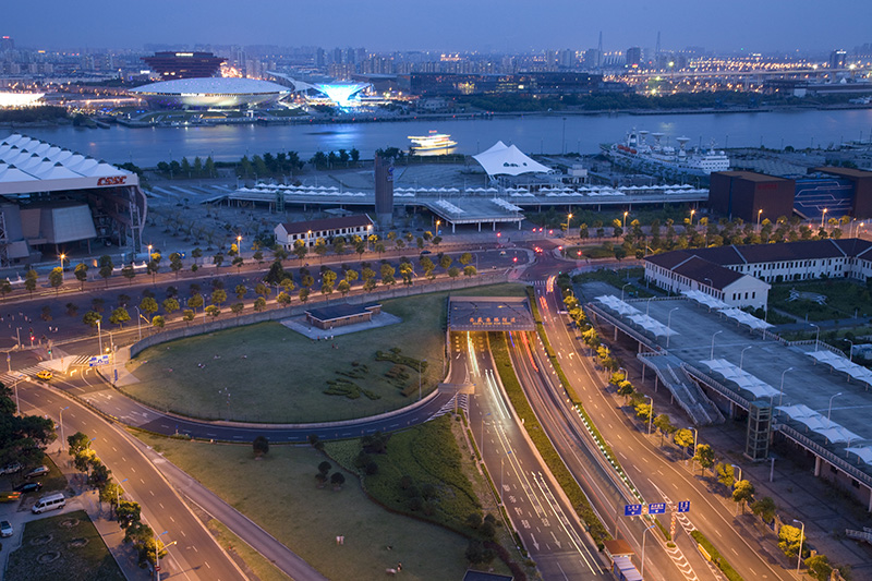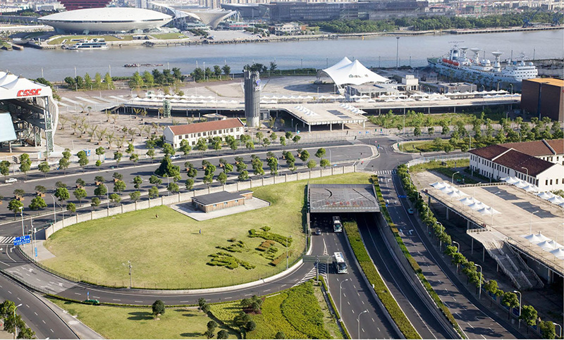 近距離下穿軌道交通8號線,世博會期間唯一一條連接浦東、浦西園區(qū)的專用隧道,也是上海市第一條有匝道設(shè)計的越江隧道 。