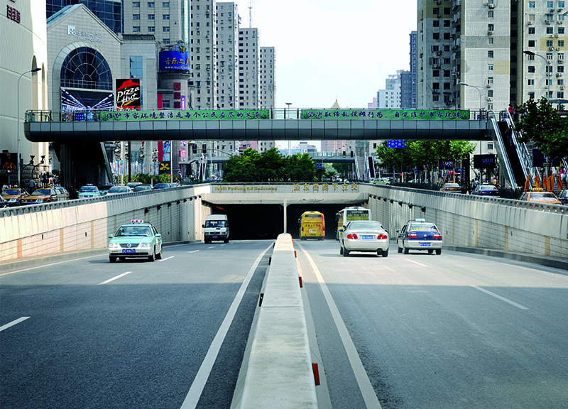 浦東南路-張揚(yáng)路下立交工程為城市主干道,雙向4車道。設(shè)計(jì)行車速度50km/h。地道全長515m,為矩形結(jié)構(gòu),道路下立交。