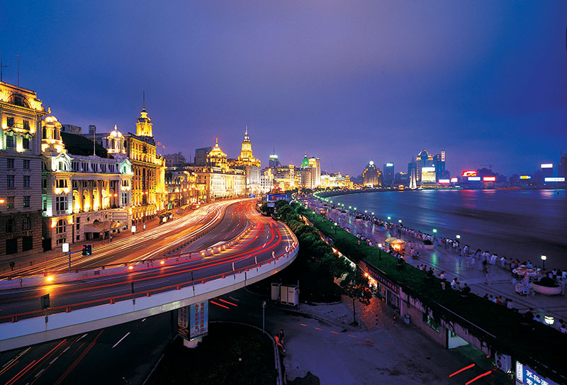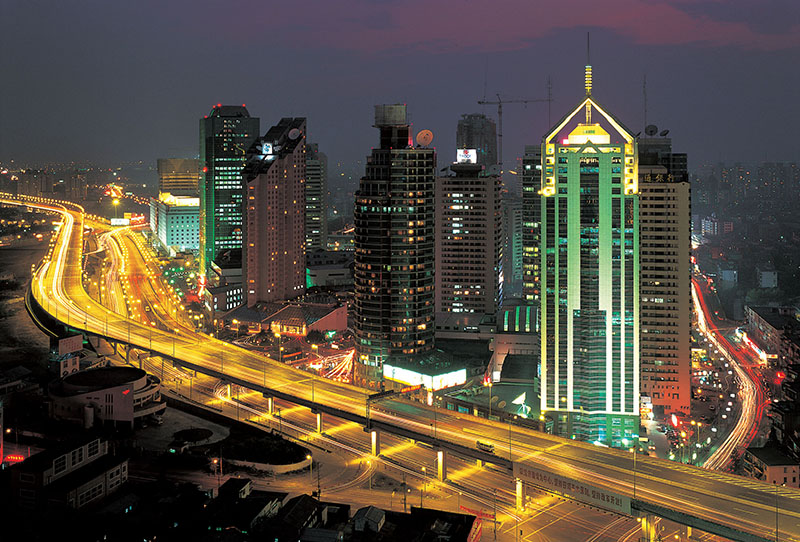 延安路高架中段全長5.56km,穿過上海市中心繁華地段。高架照明供電首次采用中壓傳輸系統(tǒng)和埋地式變壓器。特殊路段中央分隔帶采用臥式箱形照明燈具,高架兩側底邊內鑲嵌藍色光帶照明。
