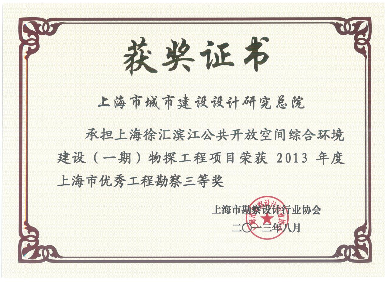 2013年度上海市優(yōu)秀工程勘察三等獎