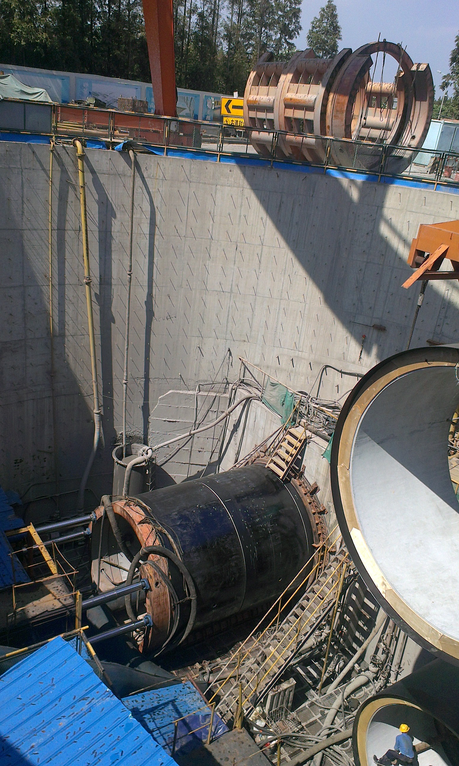 白龍港南線輸送干線排水工程,雙線全長52公里,平行敷設(shè)兩根國內(nèi)最大口徑的4米管徑污水干管,管底埋深15.0~16.0米。該工程具有“三超三多”的工程特點(diǎn):即國內(nèi)最大的超大管徑、超長頂距、超深頂管,管線搬遷多、綠化搬遷多、穿越磁懸浮、航油管等敏感區(qū)域多。該排水工程無論建設(shè)規(guī)模還是施工難度在國內(nèi)尚屬首次。