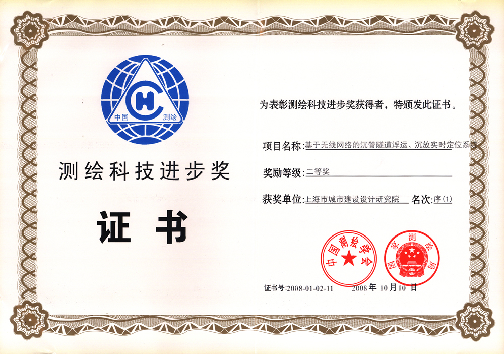 2008年度中國測繪科技進(jìn)步獎二等獎