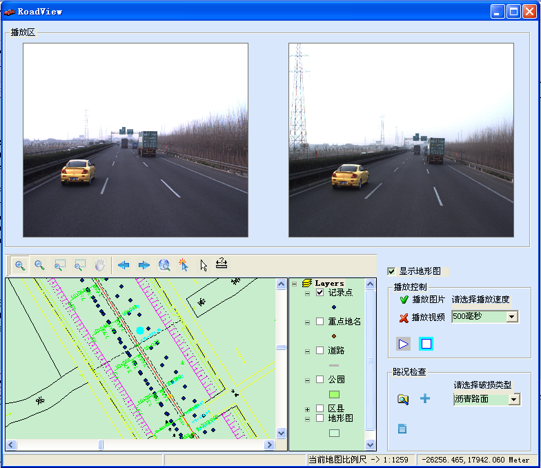 通過對移動道路測量系統(tǒng)(MMS)的應(yīng)用和開發(fā),為城市道路建立了可視化的圖庫環(huán)境,獲道路路況所需的各種數(shù)據(jù)和信息,實現(xiàn)了路況調(diào)查自動化。本成果實現(xiàn)了以下功能:在道路影像圖上進行三維坐標(biāo)及距離的量測;生成符合《公路技術(shù)狀況評定標(biāo)準(zhǔn)》的路況調(diào)查報表;本成果在嘉瀏高速公路大修工程、A9公路入城段進了應(yīng)用,作業(yè)效率提高了50%。