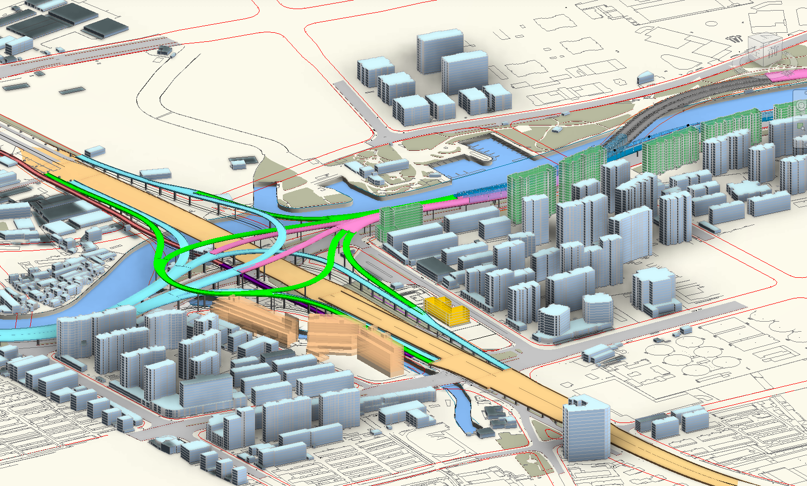 該工程包括大連路、江浦路、黃興路、隆昌路四個立交范圍內立交、道路及排水,以及全線瀝青混凝土路面攤鋪、附屬工程及管線搬遷、二類費用等。建安工程費52.95億元。