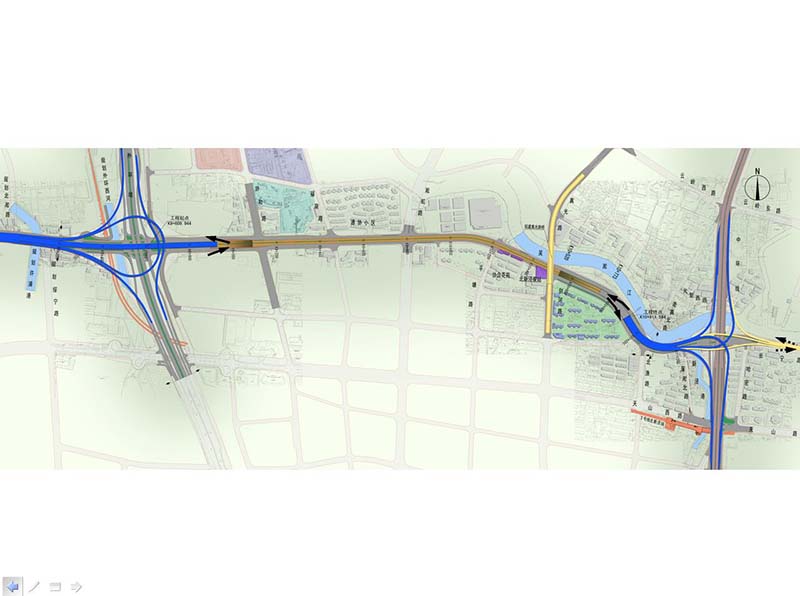 北翟路地道工程位于上海市長(zhǎng)寧區(qū),西起現(xiàn)狀北翟路外環(huán)線立交,東至北翟路中環(huán)線立交,道路全長(zhǎng)約2303.835m。本項(xiàng)目屬于國(guó)內(nèi)最早將BIM/VDC技術(shù)用于大型市政地道的完整案例,在提升設(shè)計(jì)質(zhì)量、整合現(xiàn)狀信息、虛擬工程建造等幾方面進(jìn)行了探索性應(yīng)用。本項(xiàng)目的BIM應(yīng)用思路新穎,探討了BIM與GIS結(jié)合、基于模型的出圖、分析及模擬;在施工階段對(duì)市政管線進(jìn)行綜合、結(jié)合現(xiàn)場(chǎng)開(kāi)挖,提出合理的管線搬遷方案,有助于施工方案可實(shí)施性、準(zhǔn)確性的提高。