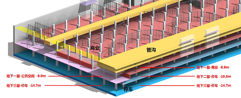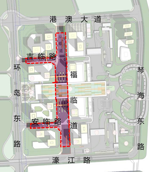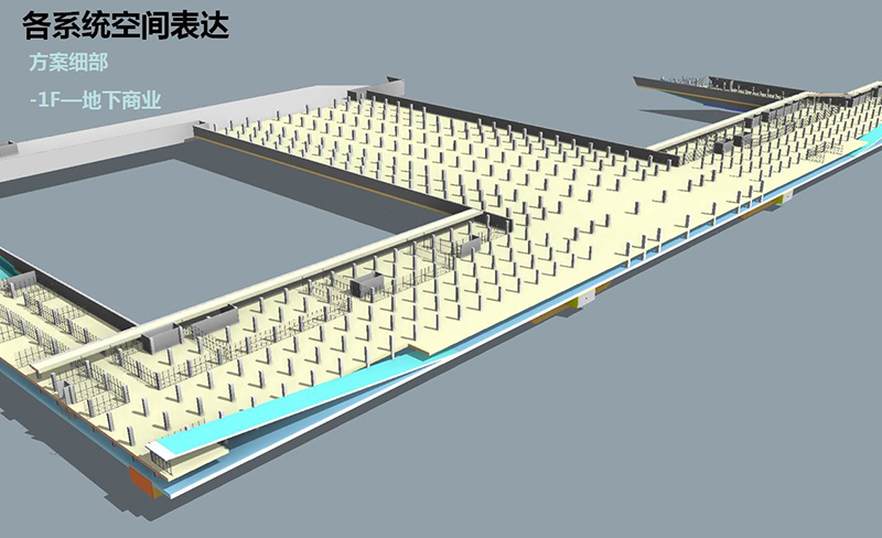 珠海橫琴口岸地下公共工程位于珠海橫琴口岸3條市政道路地下,占地5.2公頃,建筑面積10.2萬平米。本次項(xiàng)目是利用BIM技術(shù)對(duì)復(fù)雜空間規(guī)劃設(shè)計(jì)的一次積極探索。首先利用采用Revit建立三維草模,推敲方案,對(duì)地下公共工程與城際車站接口問題,綜合管廊與進(jìn)出線支管廊關(guān)系,出入口與地面關(guān)系進(jìn)行檢查、調(diào)整,通過多專業(yè)協(xié)同設(shè)計(jì), 完善了人行連通、車行連通、綜合管廊、地下防災(zāi)、商業(yè)服務(wù)、地鐵交通等幾大系統(tǒng)的組織與布局,并在Revit模型基礎(chǔ)上的進(jìn)行優(yōu)化、細(xì)化設(shè)計(jì),最后利用Vissim交通仿真模擬分析,優(yōu)化車行交通組織、進(jìn)出口閘機(jī)布設(shè)等。