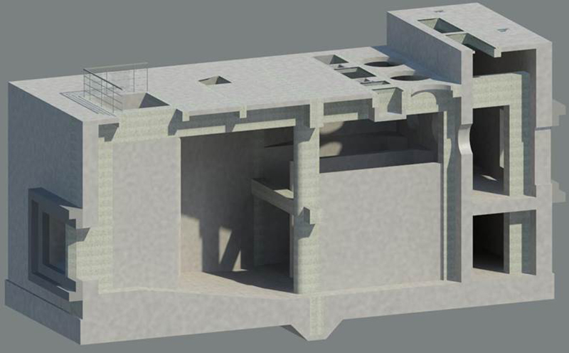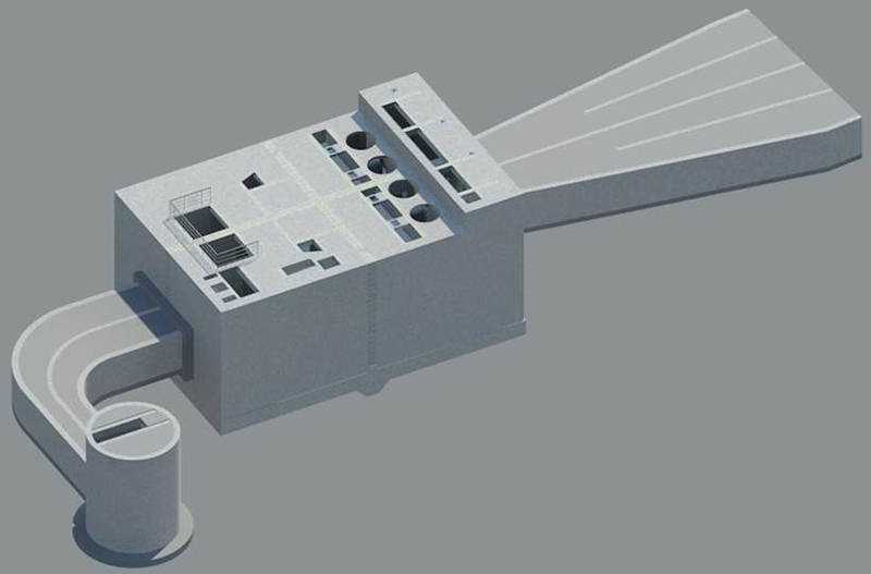 金豐城(南)雨水系統(tǒng)管網末端計算流量為9.57m3/s,設計配泵流量為管網未端計算流量的120%,計為11.48m3/s,同時在雨水泵站內設置污水截流設施,設計規(guī)模為1850 m3/d。遷建金豐路雨水泵站設置在金豐路、蟠龍港的西北角,泵站占地面積約1785m2(合2.68畝)。本項目在設計階段應用BIM輔助設計和出圖。