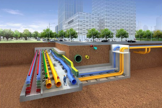 標準段斷面尺寸:BXH= 10~11mX5.0~5.3m。收納有給水管,熱力管,電力管,電信管等。