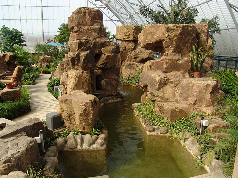 以挖湖堆山的造園手法在溫室大棚中模擬熱帶雨林自然環(huán)境