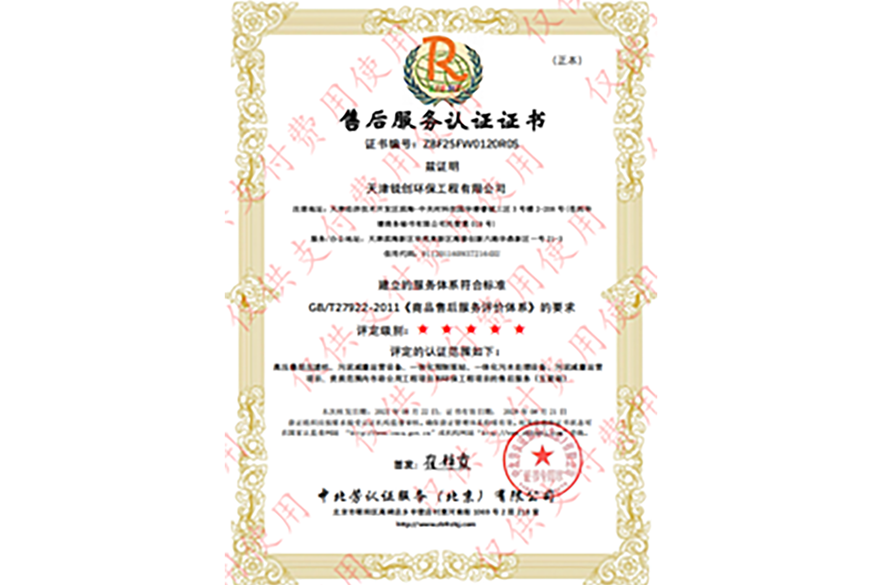 售后服務五星認證