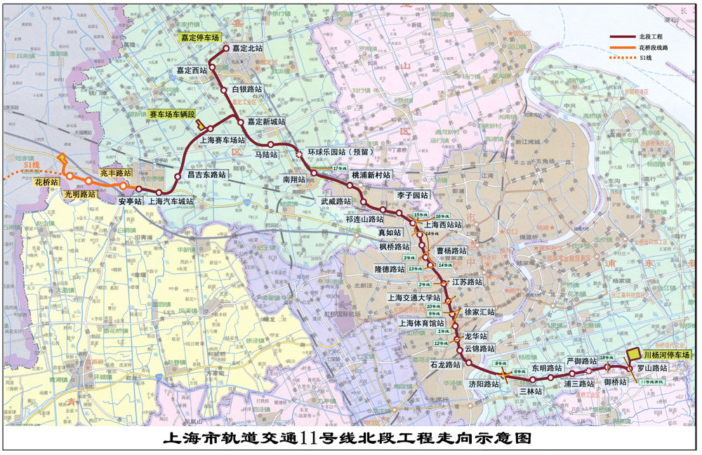 上海市軌道交通11號(hào)線北段工程(安亭站~花橋站),起點(diǎn)為嘉定區(qū)11號(hào)線安亭站,途徑花橋集中型自由辦公區(qū)(先導(dǎo)區(qū))、國際化商住配套區(qū)、復(fù)合型生態(tài)辦公區(qū)(核心區(qū))和行政居住綜合區(qū)四個(gè)規(guī)劃區(qū)域。線路全長6km。線路敷設(shè)采用高架橋形式。設(shè)站3座,分別是兆豐路站、光明路站和花橋站。