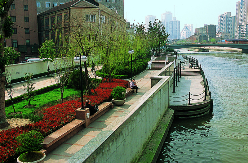 如今烏鎮(zhèn)路橋親水平臺,只見綠意盎然的小花園里,老人休閑娛樂,孩童嬉戲追逐,一點看不出這曾是運糞、運垃圾的碼頭。清清爽爽,滿目蔥蘢,成了市民休閑、娛樂的小花園。市民和中外游客可從游艇觀光碼頭登游艇,泛舟蘇州河,盡覽兩岸風情。