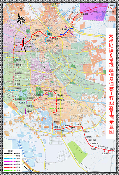 天津地鐵6號(hào)線工程全長56.15km,我院承擔(dān)7站9區(qū)間設(shè)計(jì),長約14.8km,投資約32億。其中金鐘站為天津地鐵在建首座3線換乘樞紐車站,5、6、Z2線“十”字換乘,總建筑面積約76525m2;北運(yùn)河站、六馬路站、南口路站、天泰路站、民權(quán)門站均與地塊上蓋開發(fā)結(jié)合。