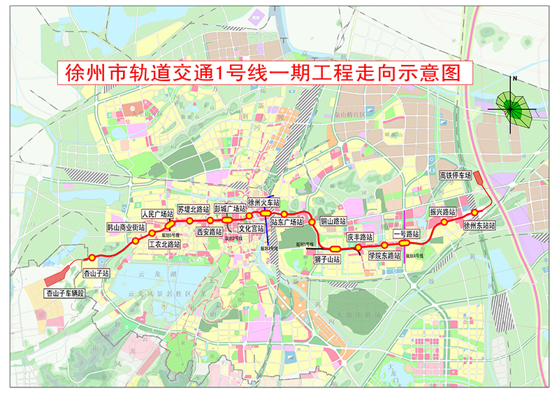 徐州市城市軌道交通1號(hào)線一期工程,線路全長約21.967km,均為地下線。全線設(shè)車站17座,其中換乘站5座,設(shè)車輛段一座、停車場(chǎng)一座,控制中心一處,主變電站兩處,聯(lián)絡(luò)線兩處,分別為彭城廣場(chǎng)站與2號(hào)線相連,一號(hào)路站與4號(hào)線相連。
