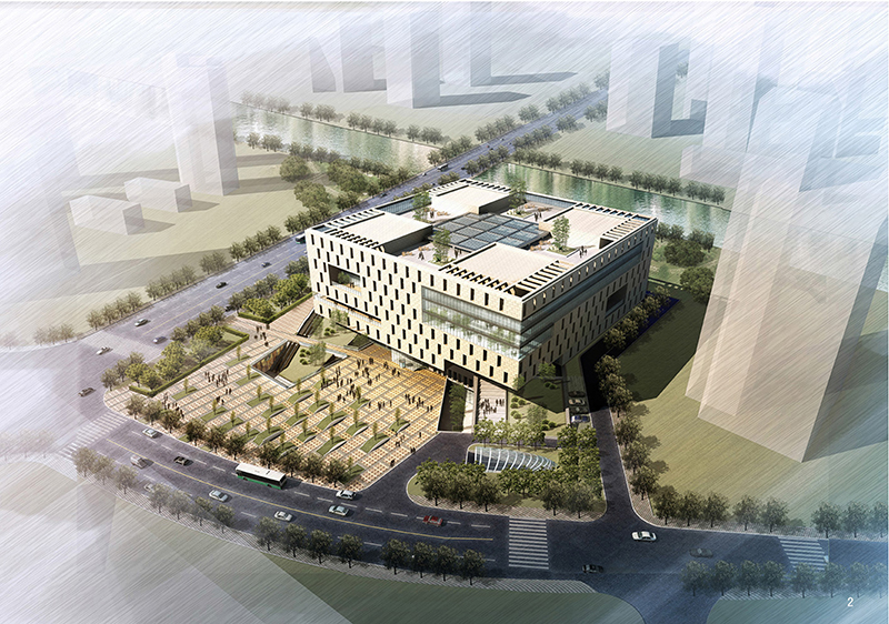 公共服務(wù)中心作為閔行區(qū)政府為市民服務(wù)的一個(gè)窗口,建筑設(shè)計(jì)體現(xiàn)了包容大氣的整體形象。